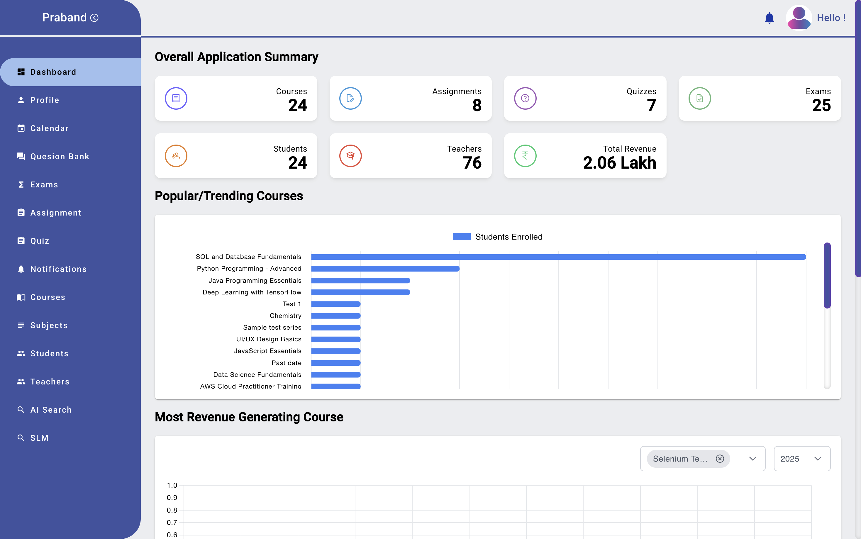 Create and assign courses, subjects, and Self Learning Materials (SLM) with ease